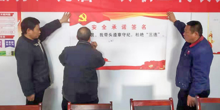 随后,在丁明的带下,党员纷纷在“我是党员,我带头遵章守纪,杜‘三违’”的允诺条幅上郑重签下了自己的名字。
