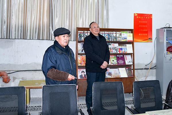 17日上午,张正和在结束困难职工走访慰问后,来到西区退休党员活动室,了解活动室的建设,指导退休党支部下步工作。