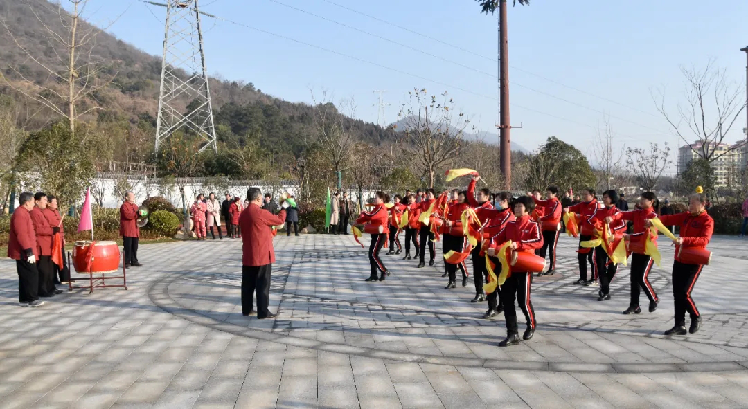 (图为皖维西生活区新建的桂花公园内,腰鼓队载歌载舞)