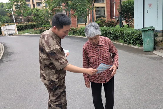 (图为保卫处党支部在生活区向住户宣传防网络诈骗知识)