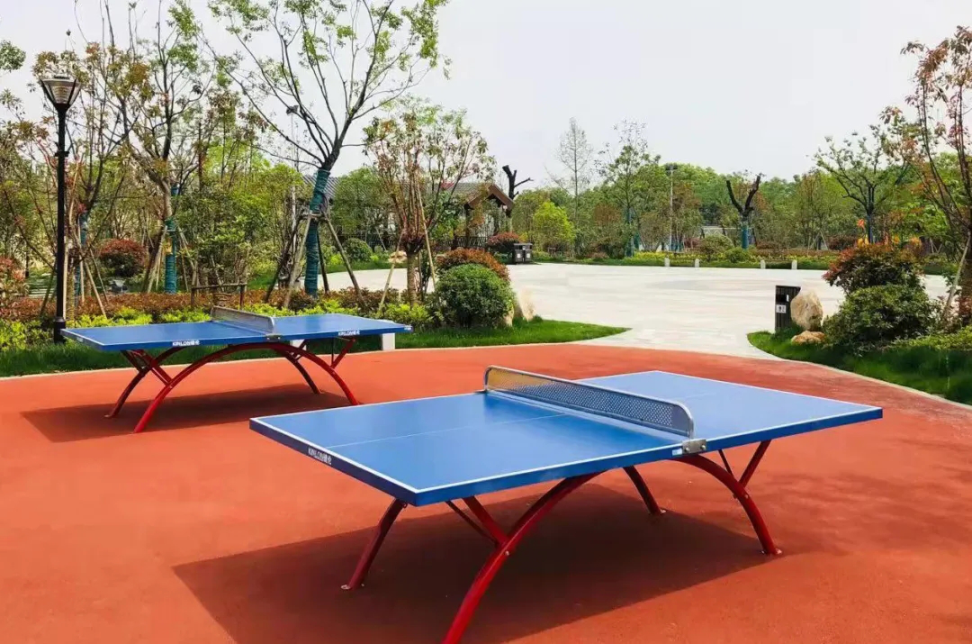(图为皖维西生活区桂花公园内新安装的乒乓球台)