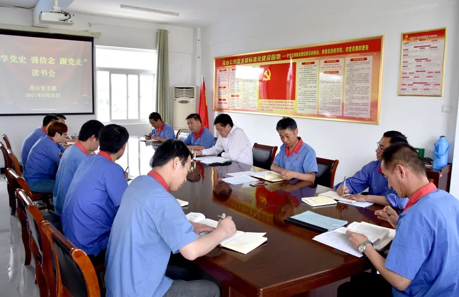 5月25日下午,花山公司党支部第一党小组召开“学党史、强信念、跟党走”读书会,集团公司党委书记、董事长吴福胜以党小组普通党员身份参加。花山党支部委员、领导班子成员受邀参加并分享党史学习体会。